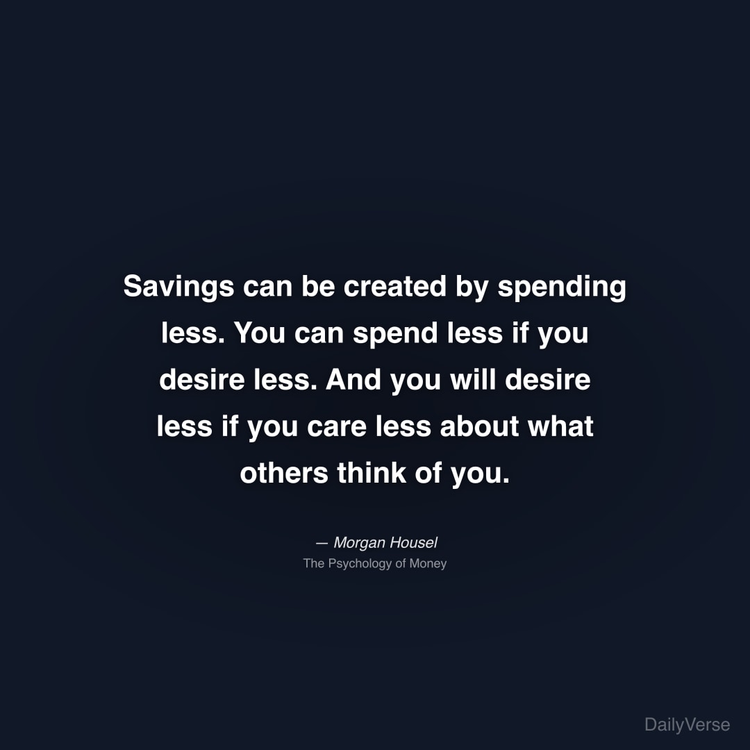 "Savings can be created by spending less. You can spend less if you desire less. And you will desire less if you care less about what others think of you." — Morgan Housel