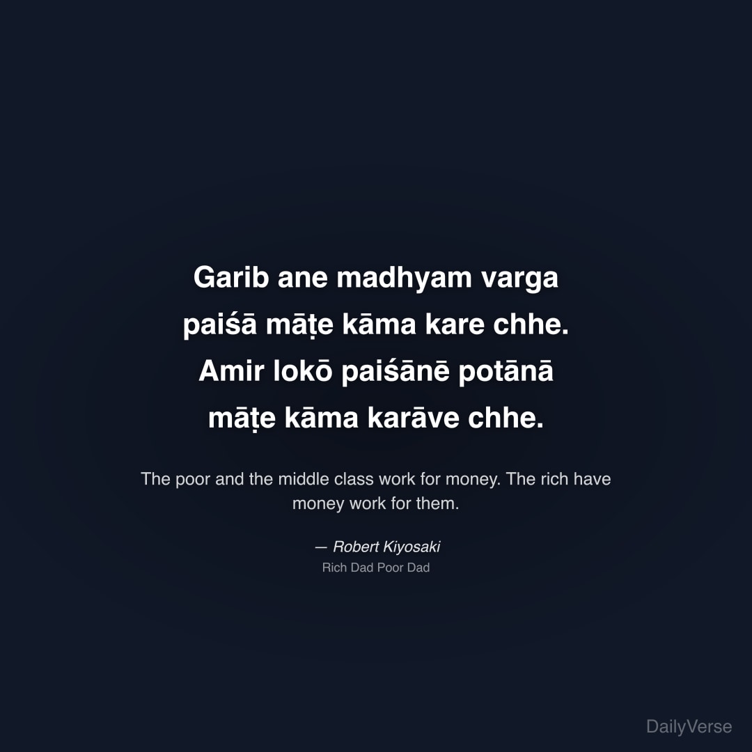 "Garib ane madhyam varga paiśā māṭe kāma kare chhe. Amir lokō paiśānē potānā māṭe kāma karāve chhe." — Robert Kiyosaki