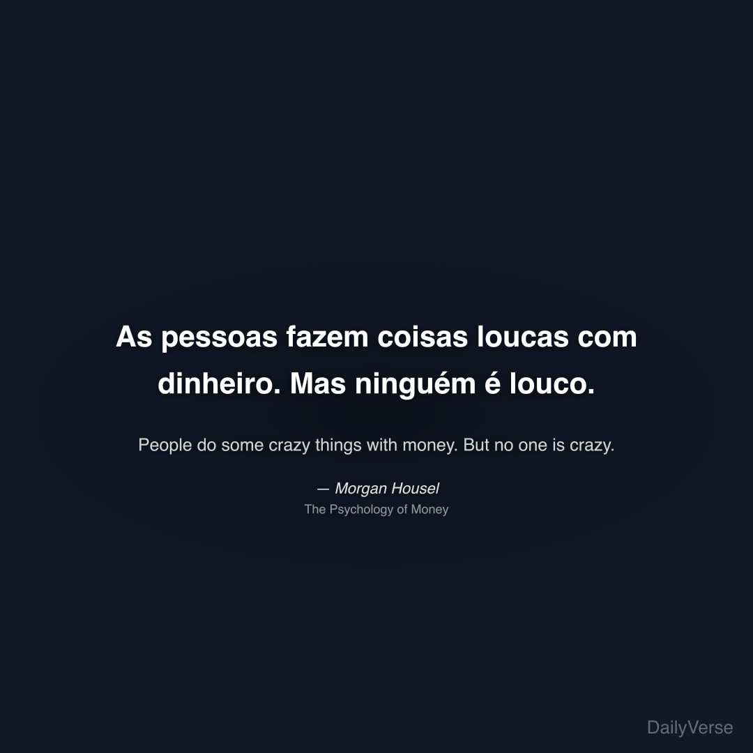 "As pessoas fazem coisas loucas com dinheiro. Mas ninguém é louco." — Morgan Housel