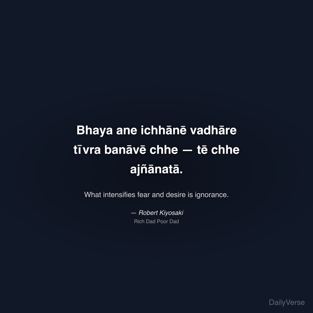 "Bhaya ane ichhānē vadhāre tīvra banāvē chhe — tē chhe ajñānatā." — Robert Kiyosaki