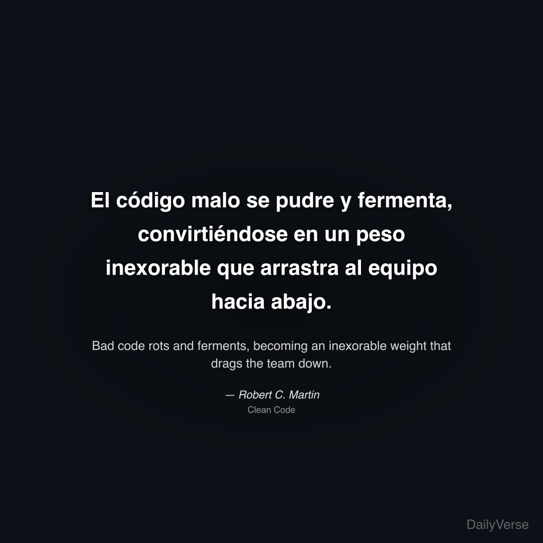 "El código malo se pudre y fermenta, convirtiéndose en un peso inexorable que arrastra al equipo hacia abajo." — Robert C. Martin