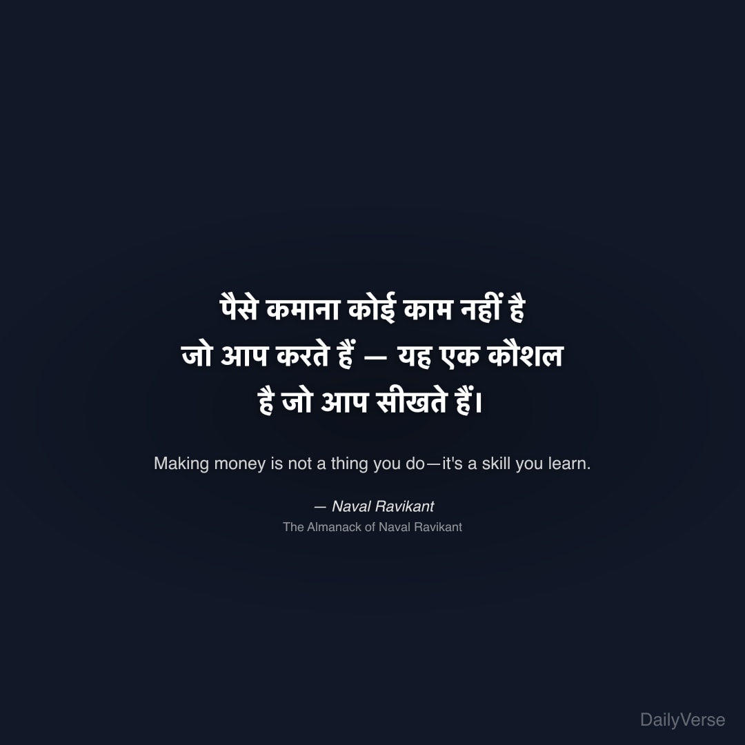 "पैसे कमाना कोई काम नहीं है जो आप करते हैं — यह एक कौशल है जो आप सीखते हैं।" — Naval Ravikant