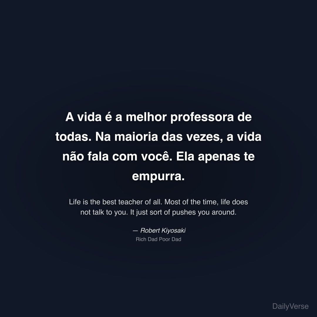 "A vida é a melhor professora de todas. Na maioria das vezes, a vida não fala com você. Ela apenas te empurra." — Robert Kiyosaki