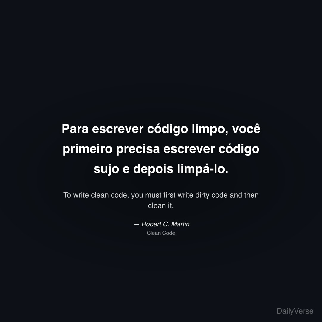 "Para escrever código limpo, você primeiro precisa escrever código sujo e depois limpá-lo." — Robert C. Martin