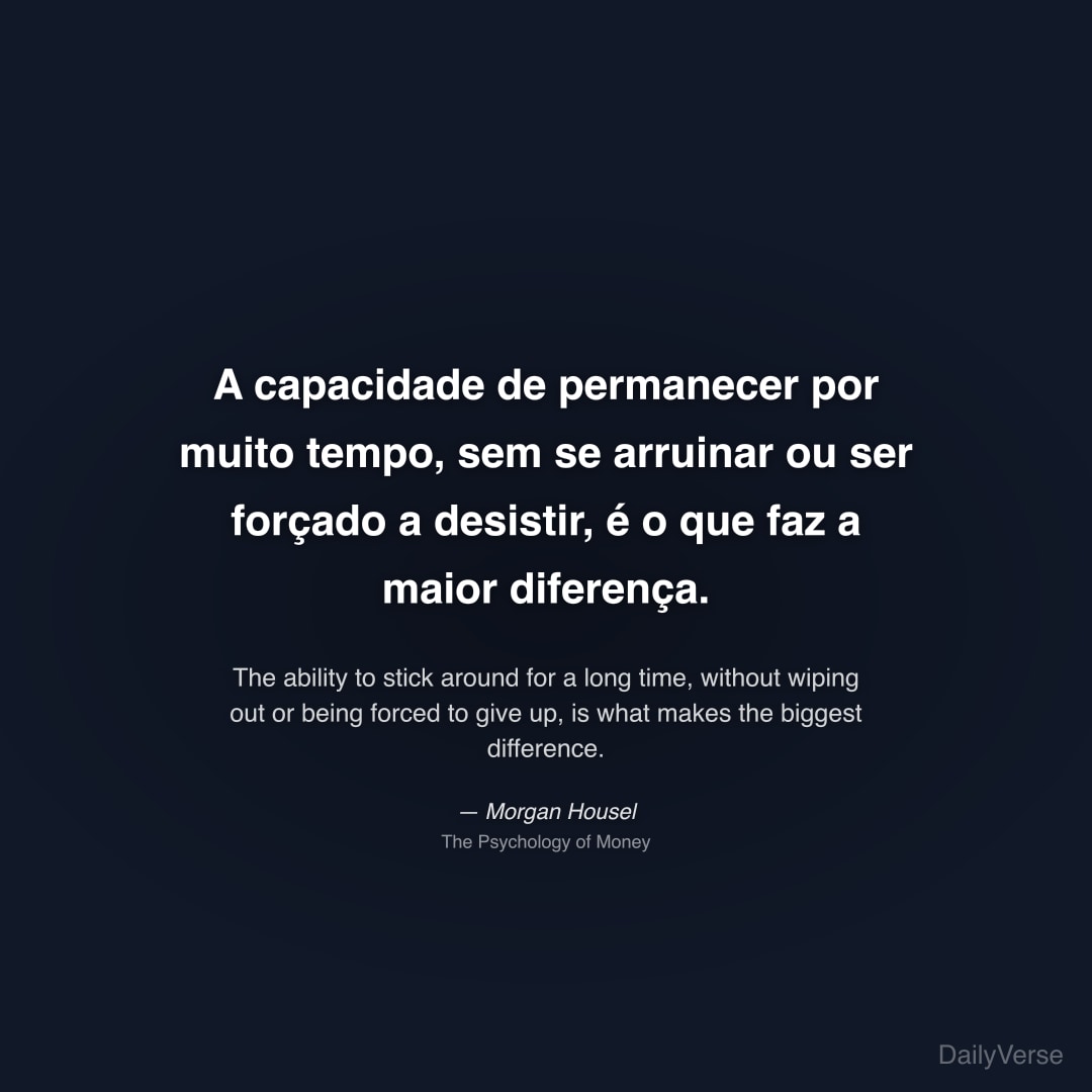 "A capacidade de permanecer por muito tempo, sem se arruinar ou ser forçado a desistir, é o que faz a maior diferença." — Morgan Housel