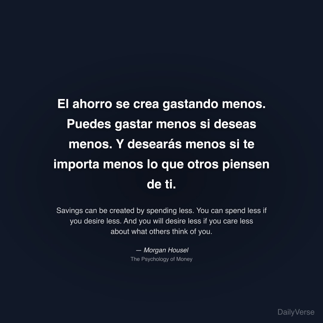"El ahorro se crea gastando menos. Puedes gastar menos si deseas menos. Y desearás menos si te importa menos lo que otros piensen de ti." — Morgan Housel