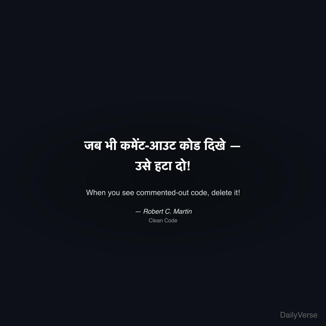"जब भी कमेंट-आउट कोड दिखे — उसे हटा दो!" — Robert C. Martin