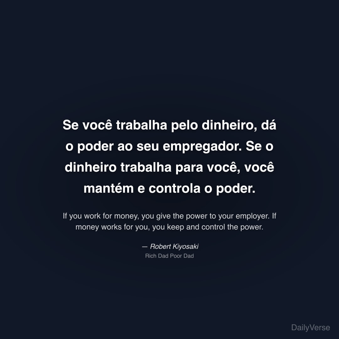 "Se você trabalha pelo dinheiro, dá o poder ao seu empregador. Se o dinheiro trabalha para você, você mantém e controla o poder." — Robert Kiyosaki