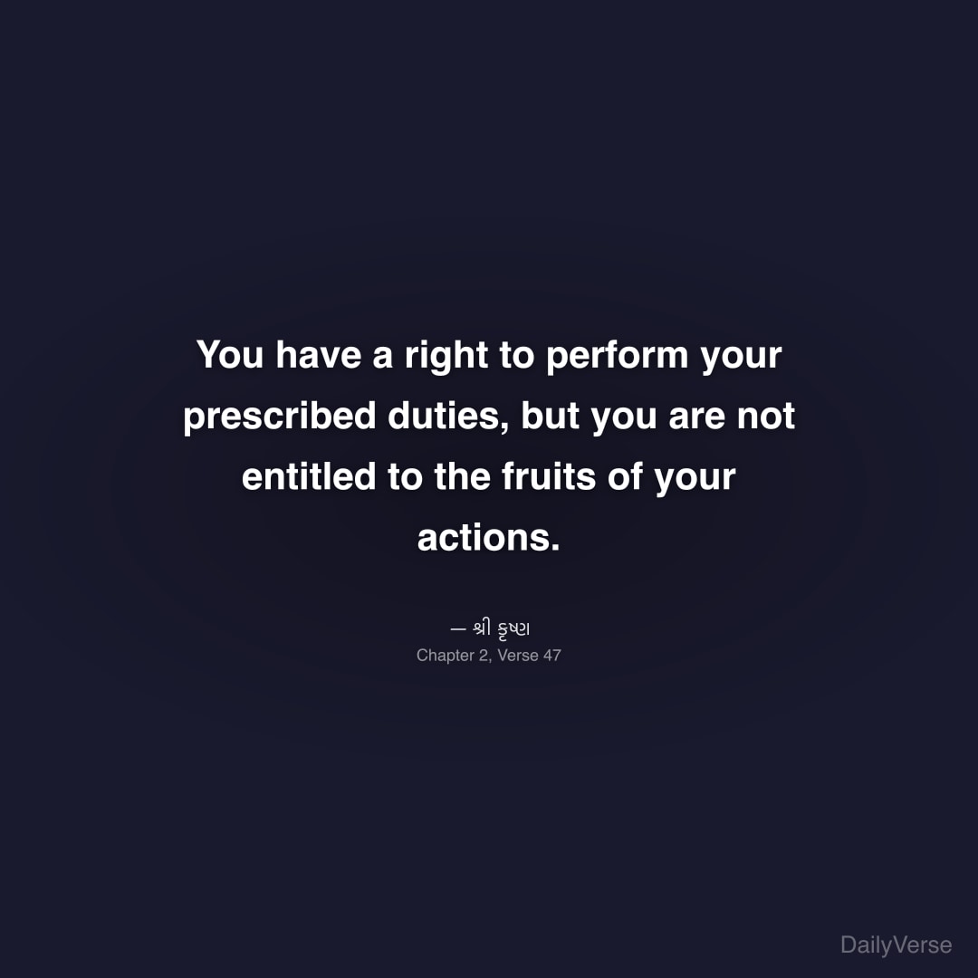 "You have a right to perform your prescribed duties, but you are not entitled to the fruits of your actions." — શ્રી કૃષ્ણ