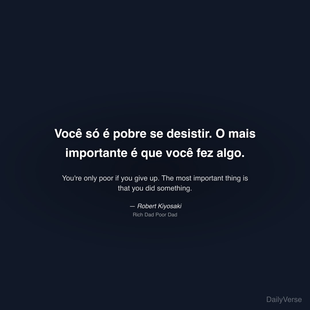 "Você só é pobre se desistir. O mais importante é que você fez algo." — Robert Kiyosaki
