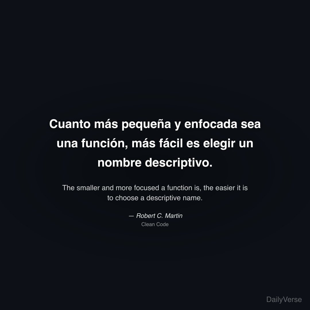 "Cuanto más pequeña y enfocada sea una función, más fácil es elegir un nombre descriptivo." — Robert C. Martin