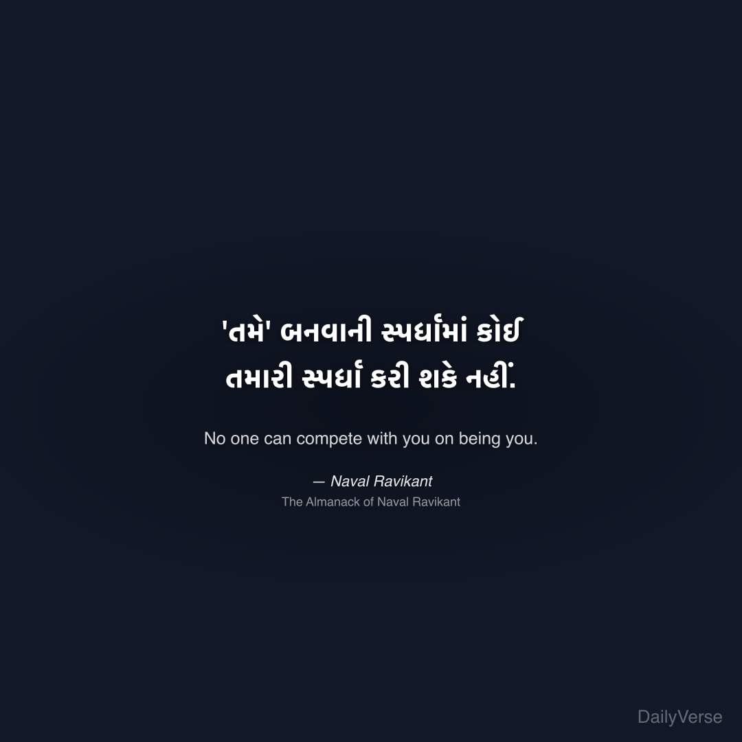 "'તમે' બનવાની સ્પર્ધામાં કોઈ તમારી સ્પર્ધા કરી શકે નહીં." — Naval Ravikant