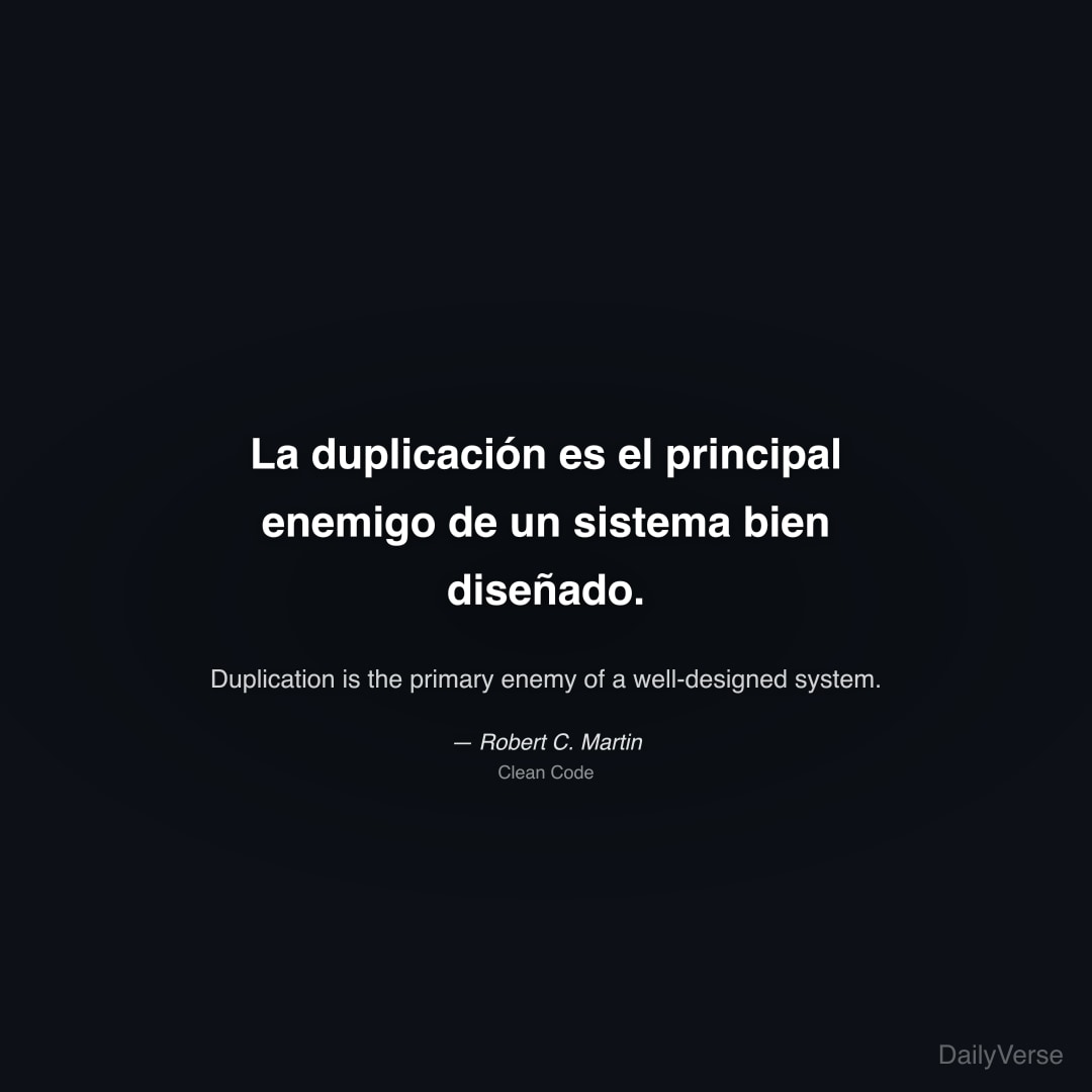 "La duplicación es el principal enemigo de un sistema bien diseñado." — Robert C. Martin