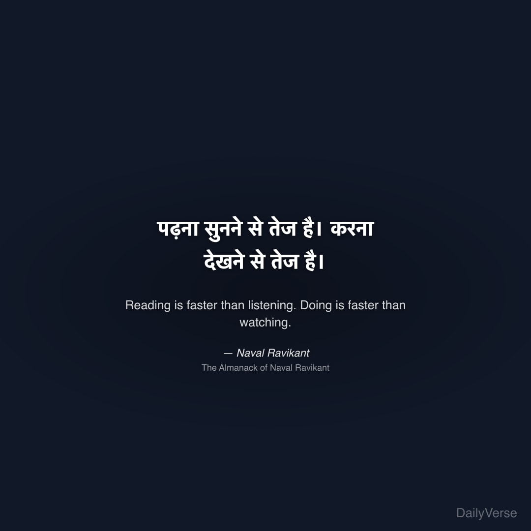 "पढ़ना सुनने से तेज है। करना देखने से तेज है।" — Naval Ravikant