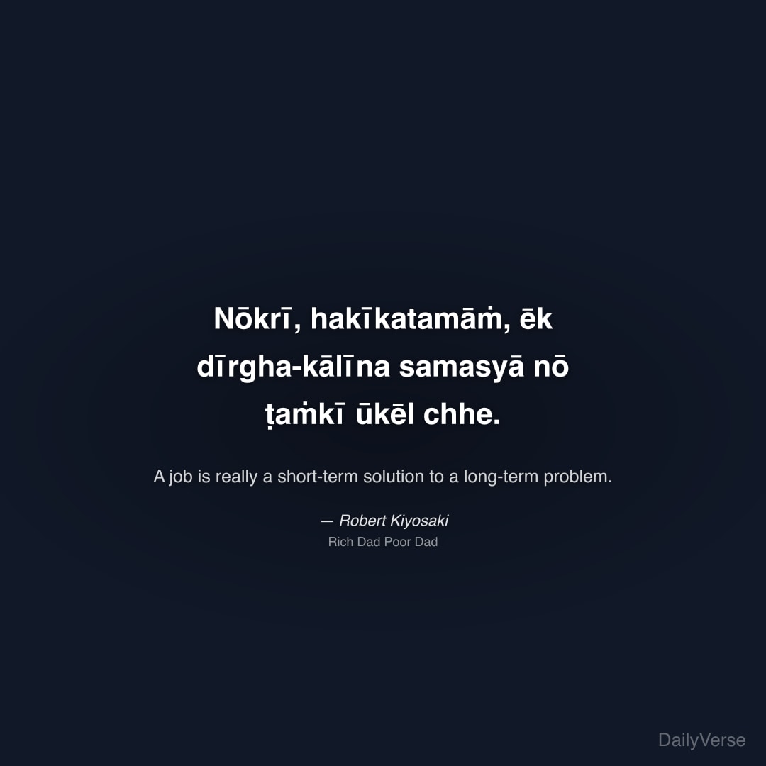 "Nōkrī, hakīkatamāṁ, ēk dīrgha-kālīna samasyā nō ṭaṁkī ūkēl chhe." — Robert Kiyosaki
