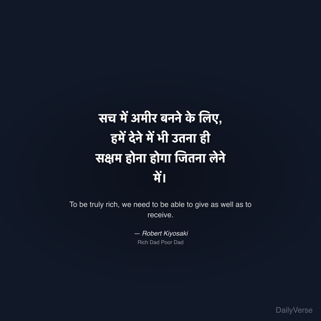 "सच में अमीर बनने के लिए, हमें देने में भी उतना ही सक्षम होना होगा जितना लेने में।" — Robert Kiyosaki