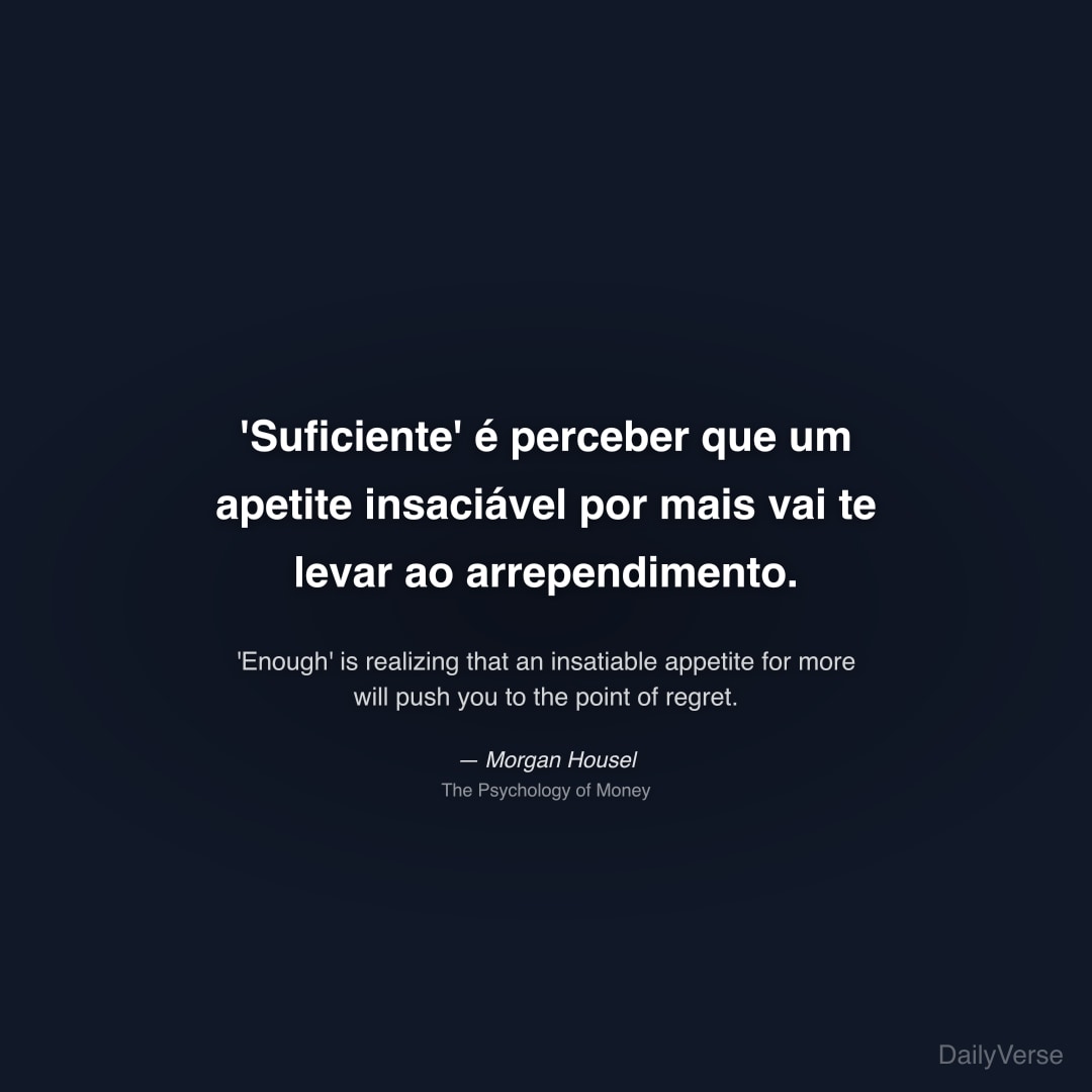 "'Suficiente' é perceber que um apetite insaciável por mais vai te levar ao arrependimento." — Morgan Housel