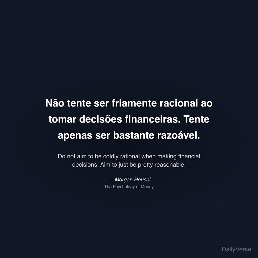 "Não tente ser friamente racional ao tomar decisões financeiras. Tente apenas ser bastante razoável." — Morgan Housel