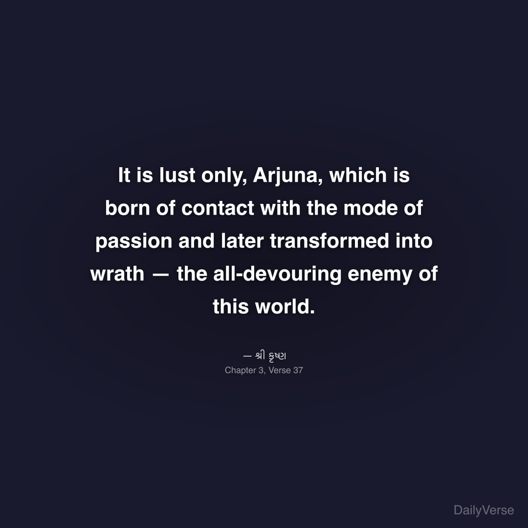 "It is lust only, Arjuna, which is born of contact with the mode of passion and later transformed into wrath — the all-devouring enemy of this world." — શ્રી કૃષ્ણ