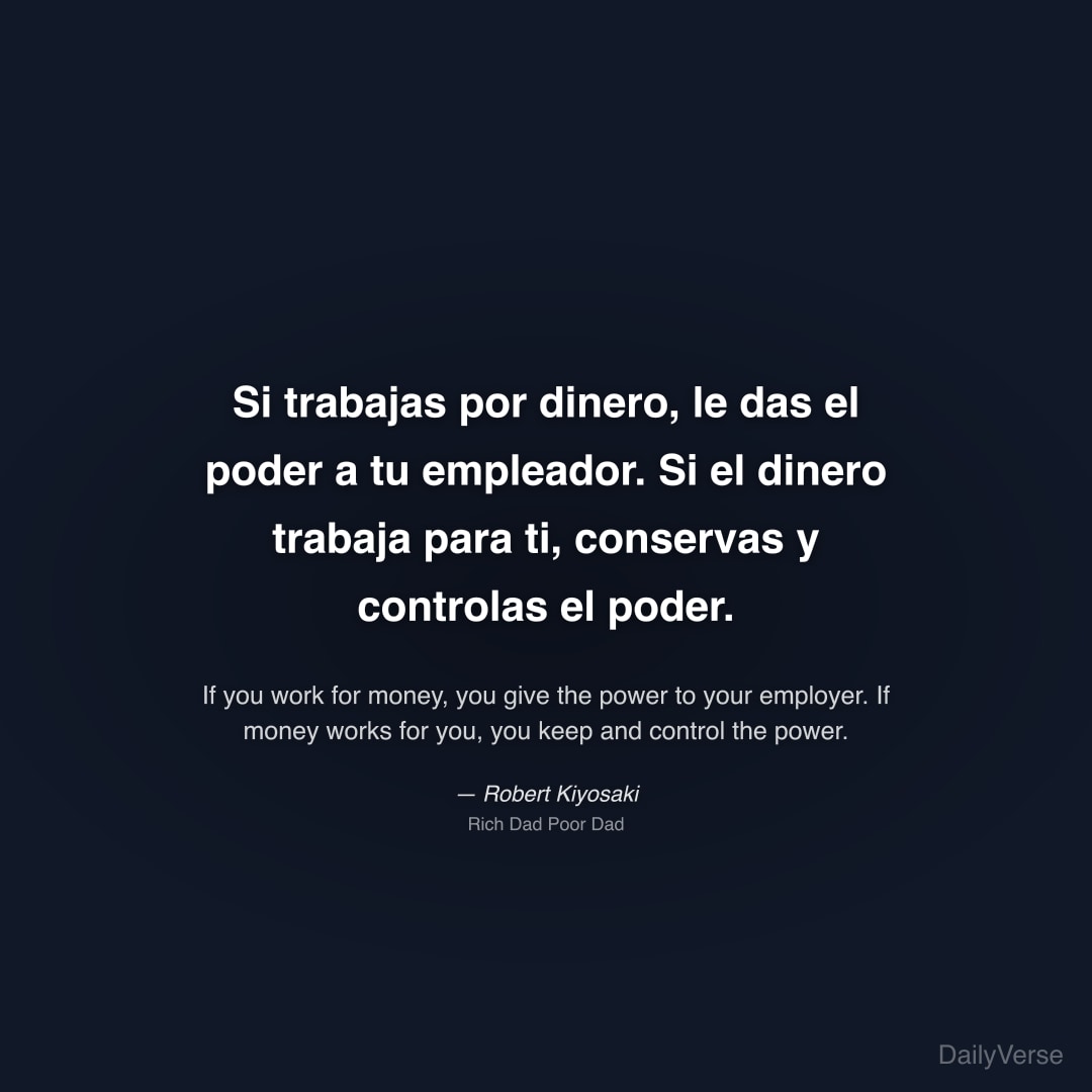 "Si trabajas por dinero, le das el poder a tu empleador. Si el dinero trabaja para ti, conservas y controlas el poder." — Robert Kiyosaki