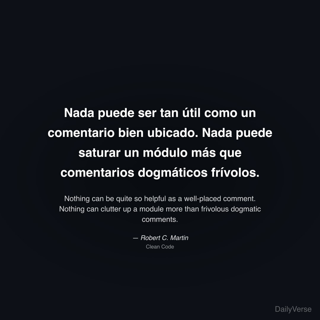 "Nada puede ser tan útil como un comentario bien ubicado. Nada puede saturar un módulo más que comentarios dogmáticos frívolos." — Robert C. Martin
