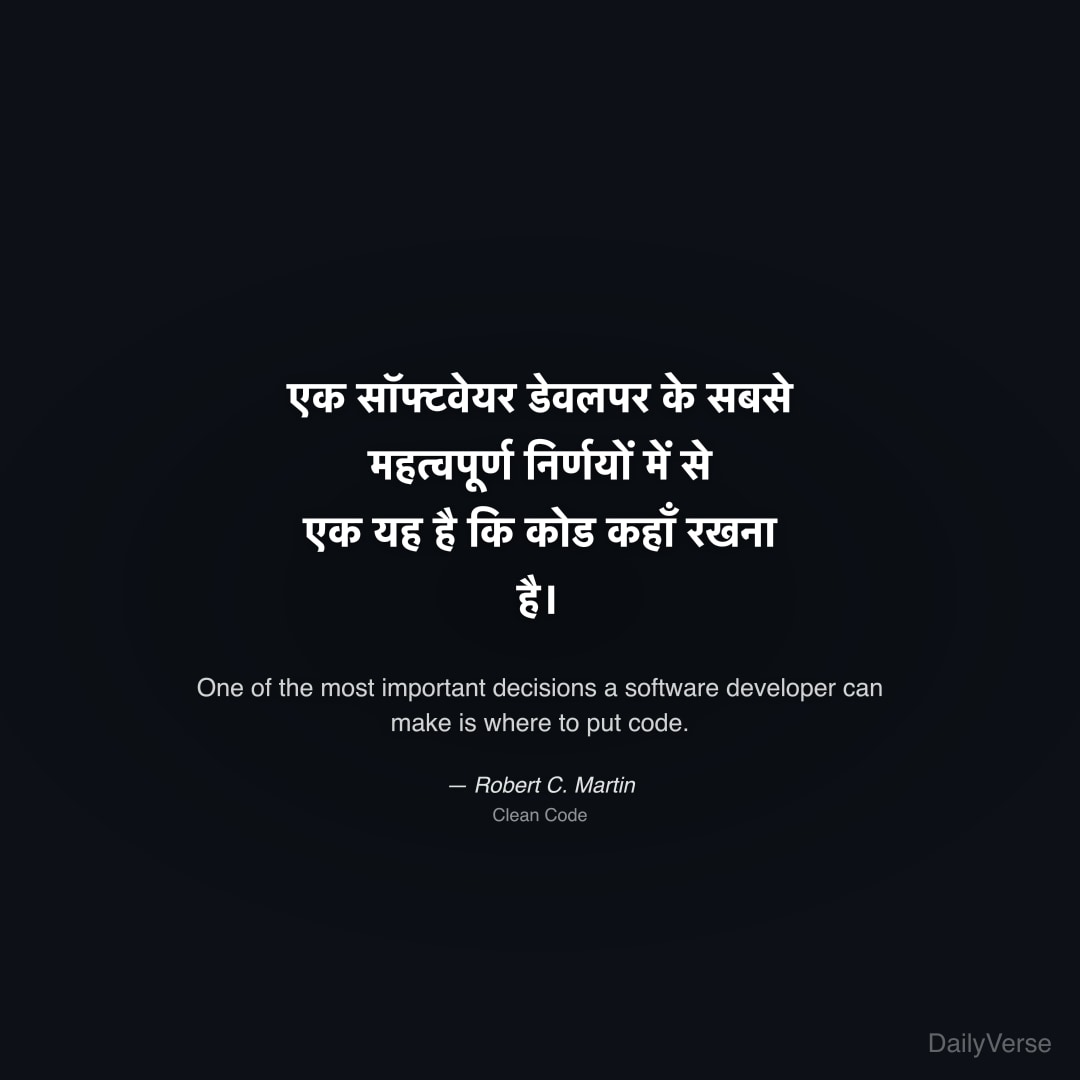 "एक सॉफ्टवेयर डेवलपर के सबसे महत्वपूर्ण निर्णयों में से एक यह है कि कोड कहाँ रखना है।" — Robert C. Martin