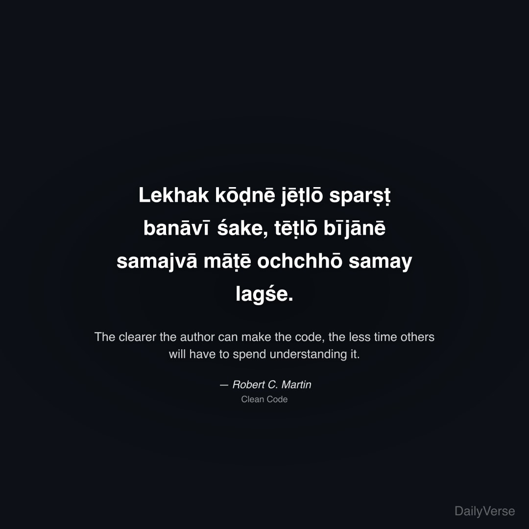 "Lekhak kōḍnē jēṭlō sparṣṭ banāvī śake, tēṭlō bījānē samajvā māṭē ochchhō samay lagśe." — Robert C. Martin
