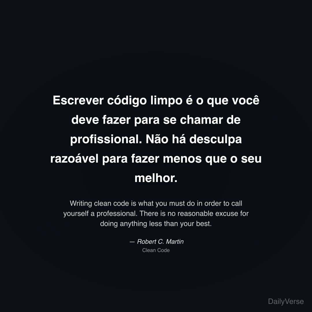 "Escrever código limpo é o que você deve fazer para se chamar de profissional. Não há desculpa razoável para fazer menos que o seu melhor." — Robert C. Martin