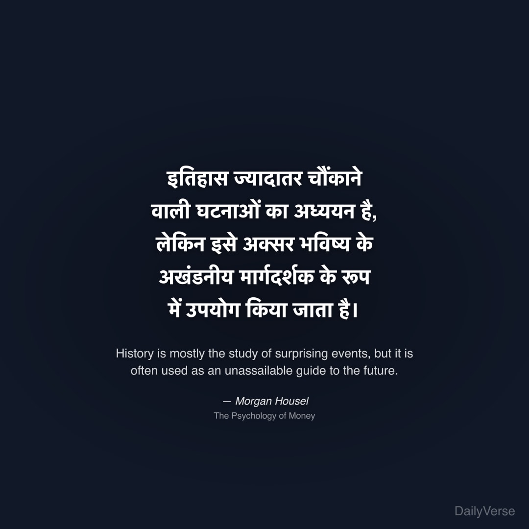 "इतिहास ज्यादातर चौंकाने वाली घटनाओं का अध्ययन है, लेकिन इसे अक्सर भविष्य के अखंडनीय मार्गदर्शक के रूप में उपयोग किया जाता है।" — Morgan Housel