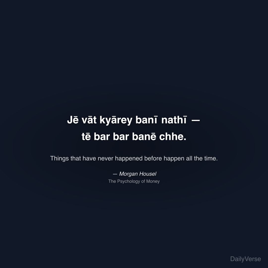 "Jē vāt kyārey banī nathī — tē bar bar banē chhe." — Morgan Housel
