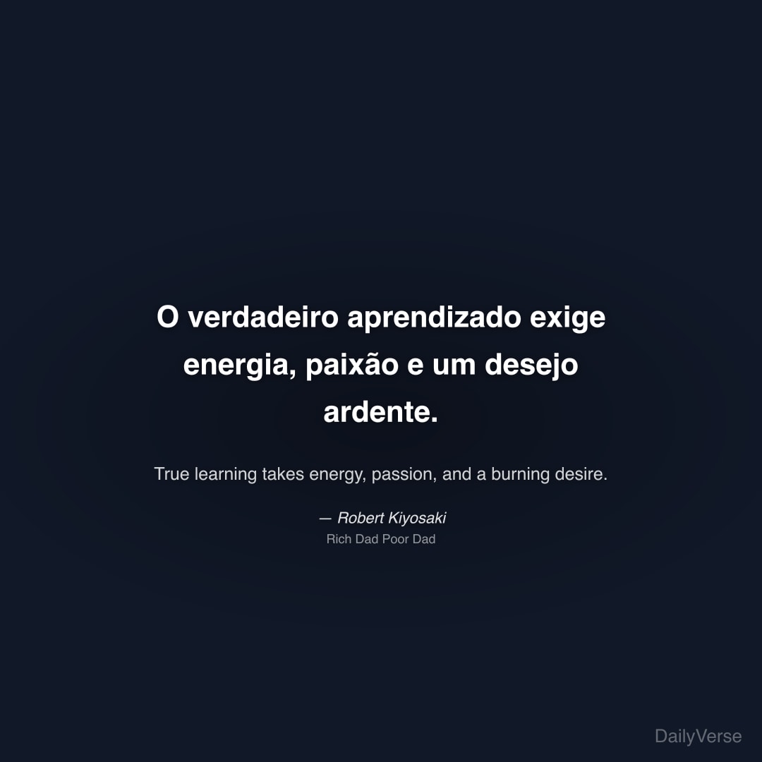 "O verdadeiro aprendizado exige energia, paixão e um desejo ardente." — Robert Kiyosaki