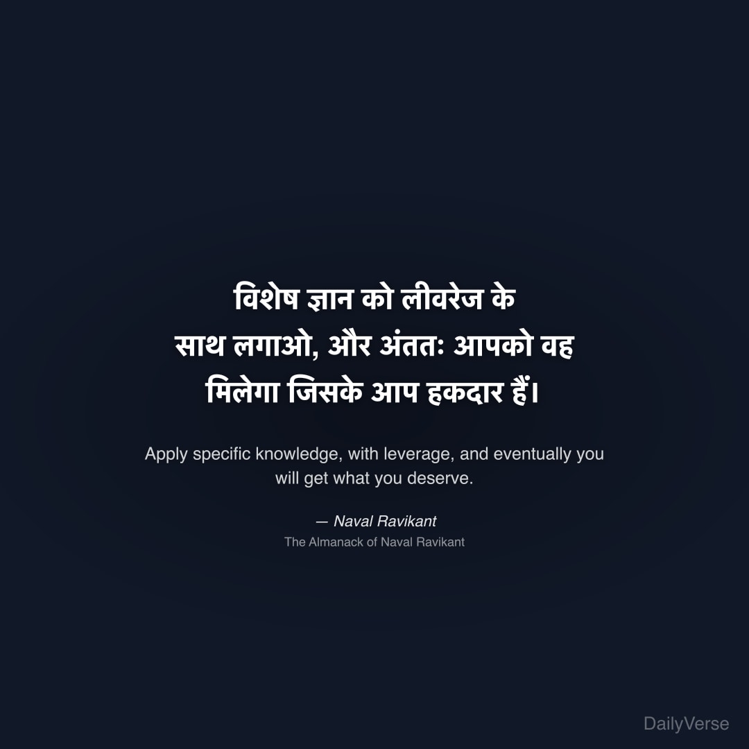 "विशेष ज्ञान को लीवरेज के साथ लगाओ, और अंततः आपको वह मिलेगा जिसके आप हकदार हैं।" — Naval Ravikant