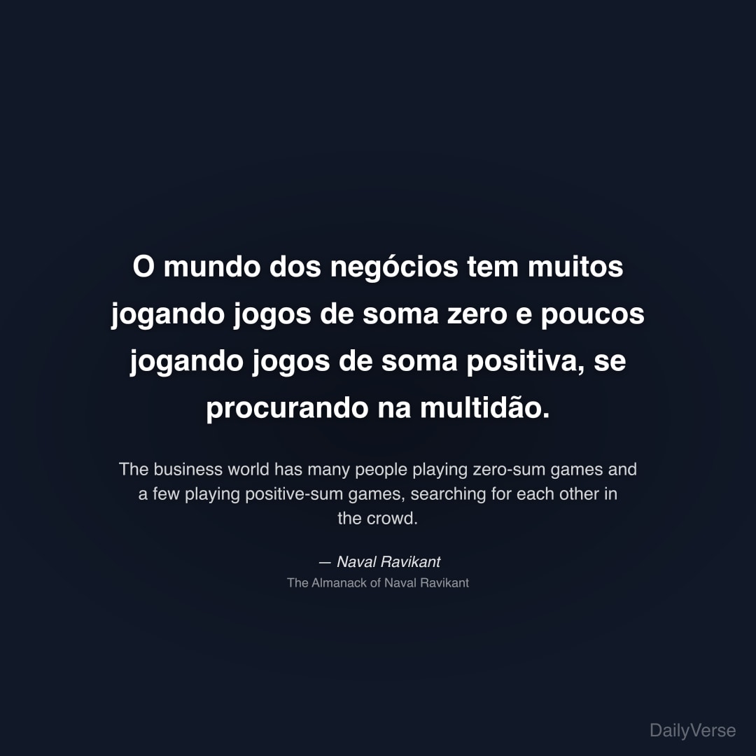 "O mundo dos negócios tem muitos jogando jogos de soma zero e poucos jogando jogos de soma positiva, se procurando na multidão." — Naval Ravikant